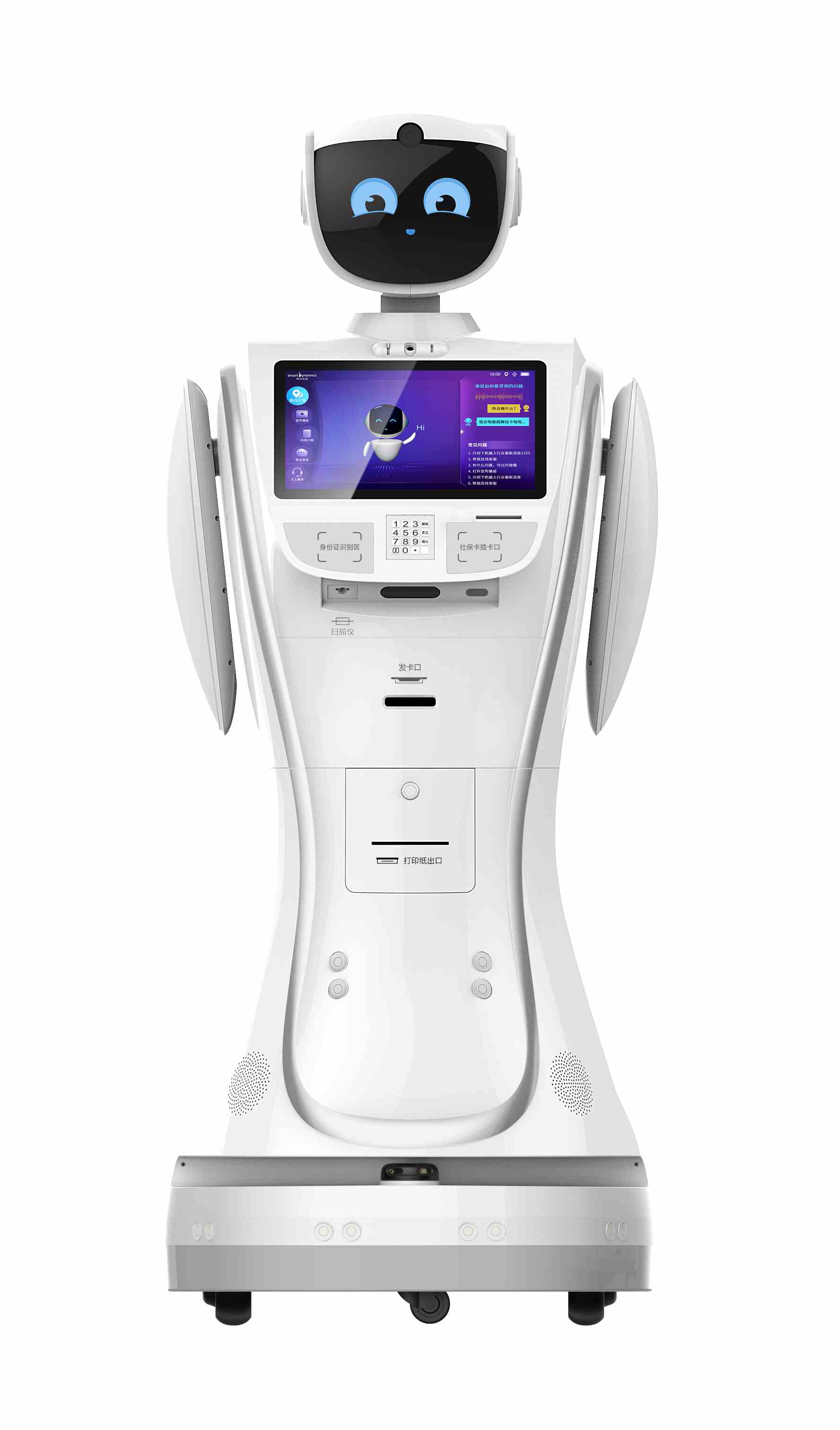 神州云海研發的艾娃客服機器人是一款室內服務型機器人,它